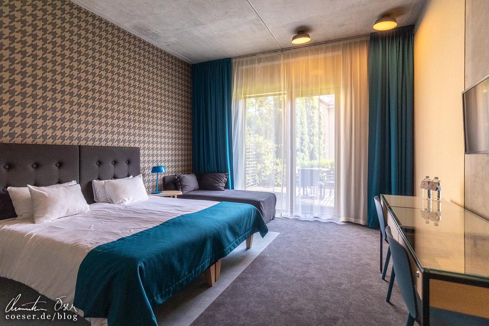 Unterkunft: KURSHI HOTEL & SPA* (Ceriņu iela 22, Jūrmala): modernes neues Hotel im Ortsteil Dubulti, einige wenige kostenlose Parkplätze direkt vor der Tür auf der Straße oder gegen Gebühr in einem privaten Bereich. Sehr geräumige Zimmer, unseres mit Terrasse und sehr ruhig zum Innenhof gelegen, sehr bequeme Betten, Safe vorhanden, Klimaanlage abschaltbar, Frühstück in Ordnung aber nichts Besonderes, schnelles WLAN. Spa- bzw. Saunabereich nur gegen Reservierung und Gebühr, deshalb nicht genutzt. Weiterempfehlung? JA!