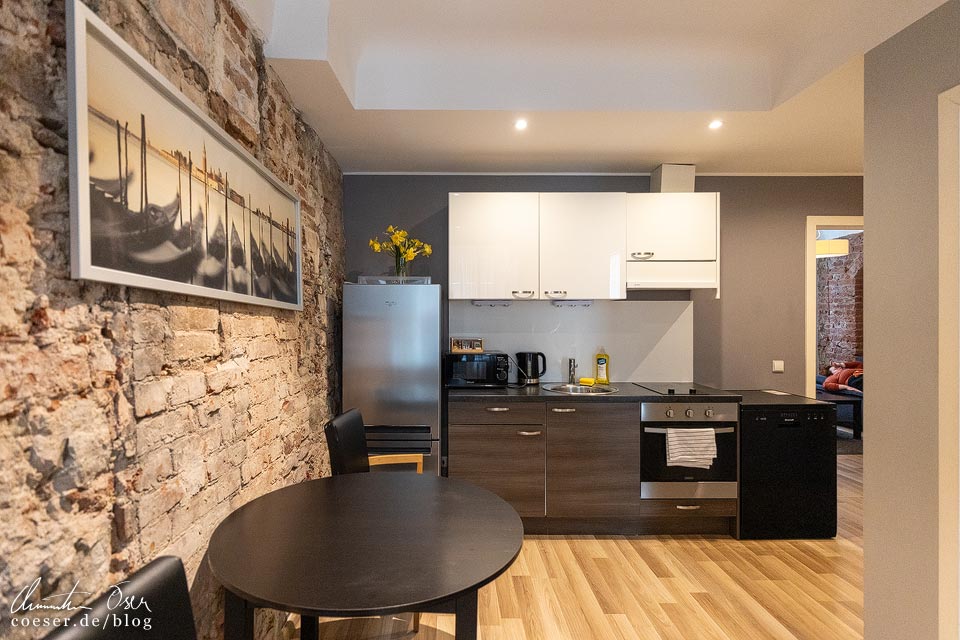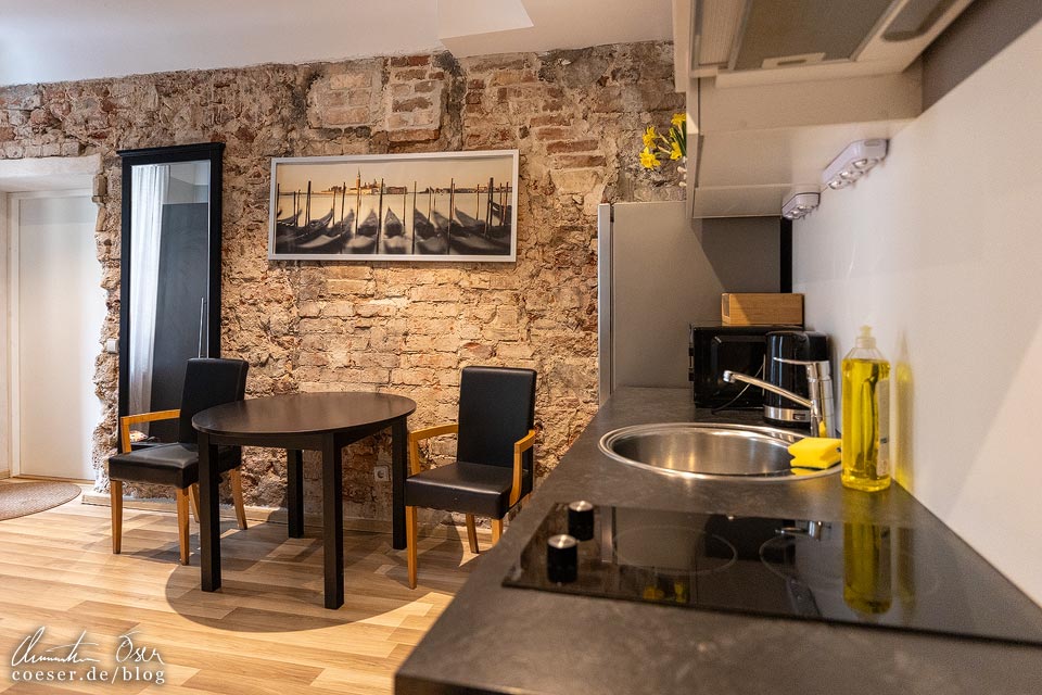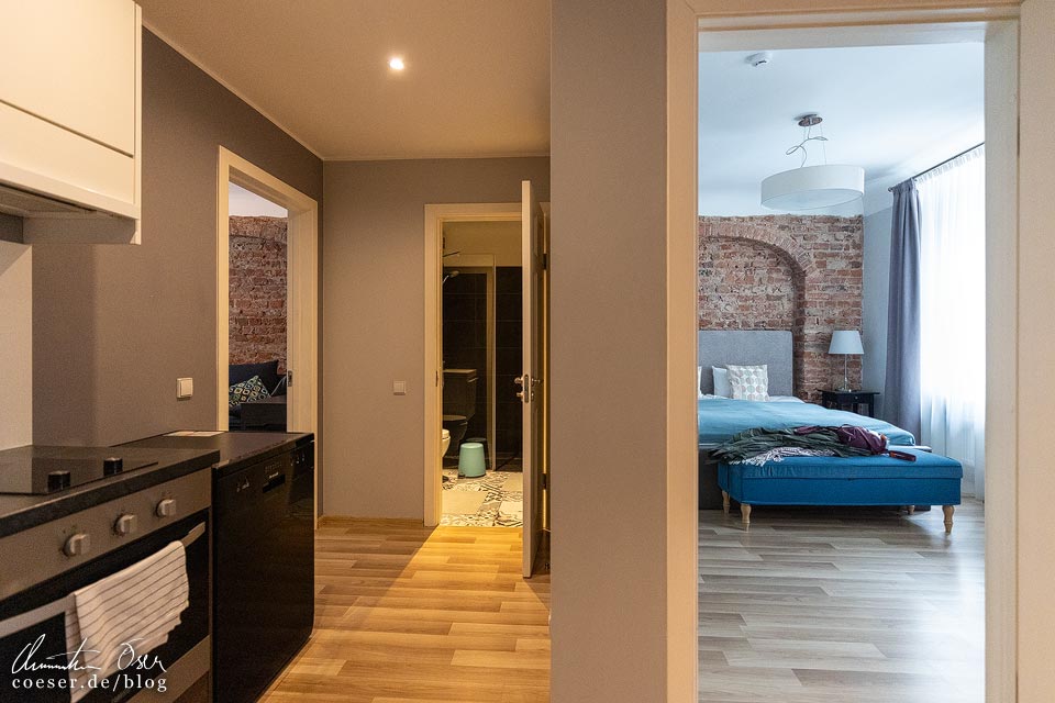 Unterkunft: Colonel Suites & Apartments* (Meistaru iela 23, Riga): sehr schöne Apartments in ausgezeichneter Lage im Herzen der Altstadt von Riga, vom Rathausplatz und der Flughafen-Busstation Grēcinieku iela nur sieben Gehminuten entfernt. Große Räume, ein Schlafzimmer, ein Wohnzimmer mit ausziehbarer Couch, modernes Bad mit super Dusche, voll ausgestattete Küchenzeile, schnelles WLAN, Klimaanlage (abschaltbar). Unkomplizierter Self-Check-in mittels Zugangscodes und Schlüsselsafe, Kommunikation mit den Besitzern im Bedarfsfall per Whatsapp. Schließfächer für Großgepäck sind im 1. Stock, im Erdgeschoss ist ein Steakrestaurant untergebracht und rundherum viele weitere Lokale. Weiterempfehlung? JA!