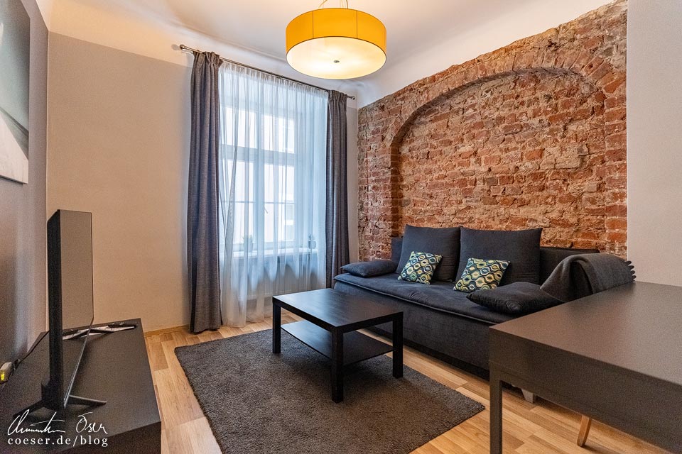 Unterkunft: Apartments Vitenberg* (Rīgas iela 9, Cēsis): komplett renoviertes Eckhaus mit schöner Ziegelfassade, perfekt gelegen im Zentrum von Cesis, Self-Check-in mit zwei Codes für die Haustür und einen Schlüsselsafe beim Zimmer. Kein Aufzug vorhanden, aber das Gebäude hat nur zwei Stockwerke. Sehr gute Kommunikation per WhatsApp, wobei die Gastgeberin auf meine Nachrichten immer unmittelbar reagierte. Unser Apartment Studio 3 war sehr stilvoll und mit 34m² äußerst geräumig. Küchenzeile mit kleinem Herd, Kühlschrank, Toaster, Kaffeemaschine, Wasserkocher und Besteck (auch Korkenzieher) vorhanden. Schnelles WLAN, Esstisch, Sofa, großer TV, Bett mit etwas zu weicher Matratze, sauberes Bad mit super Regendusche. 3-4 Parkplätze im Innenhof, ansonsten Parken auf der Nebenstraße kostenlos möglich. Weiterempfehlung? JA!