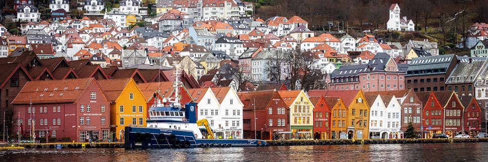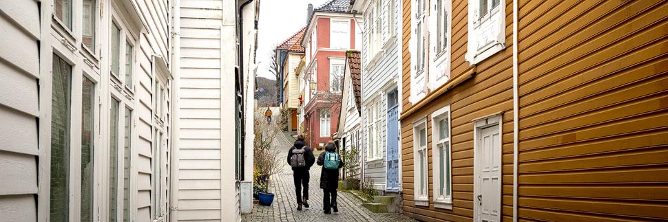 Die Hauptsehenswürdigkeit der Stadt ist das Hanseviertel Bryggen mit seinen kleinen, bunten Holzhäusern. Bergen wurde bereits 1070 gegründet und bekam von König Olav Kyrre die Stadtrechte verliehen. Ab dem 12. Jahrhundert war sie norwegische Krönungsstadt, bis zuerst Trondheim und später schließlich Oslo diese Rolle übernahmen. Durch den Verkauf von Stockfisch (Kabeljau) und Getreide entwickelte sich Bergen zu einem wichtigen Umschlagplatz. Der norddeutsche Handelsbund Hanse errichtete deshalb dort 1337 eine Handelsniederlassung – den Handelskontor Tyske Bryggen (Deutsche Brücke). Mehr als zwanzig nebeneinanderliegende Holzhäuser ergaben das bis heute so weltbekannte Stadtbild.