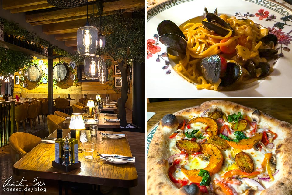 Restaurant Villani Skostredet (Skostredet 9A): Auf der sehenswerten Gasse Skostredet liegt dieses stilvolle Lokal, das Pizza, Fisch und Fleisch serviert. Wir wählten Linguine allo Scoglio und eine vegetarische Pizza Ortolana – beides sehr empfehlenswert!