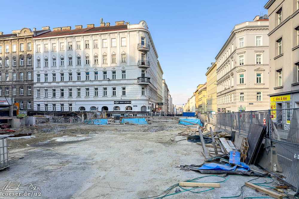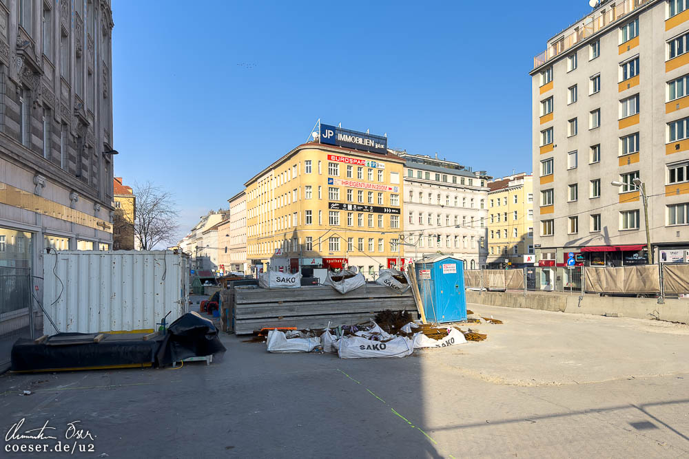 Baufortschritt auf der zukünftigen Station Matzleinsdorfer Platz, Baubeginn auf dem Margaretengürtel
