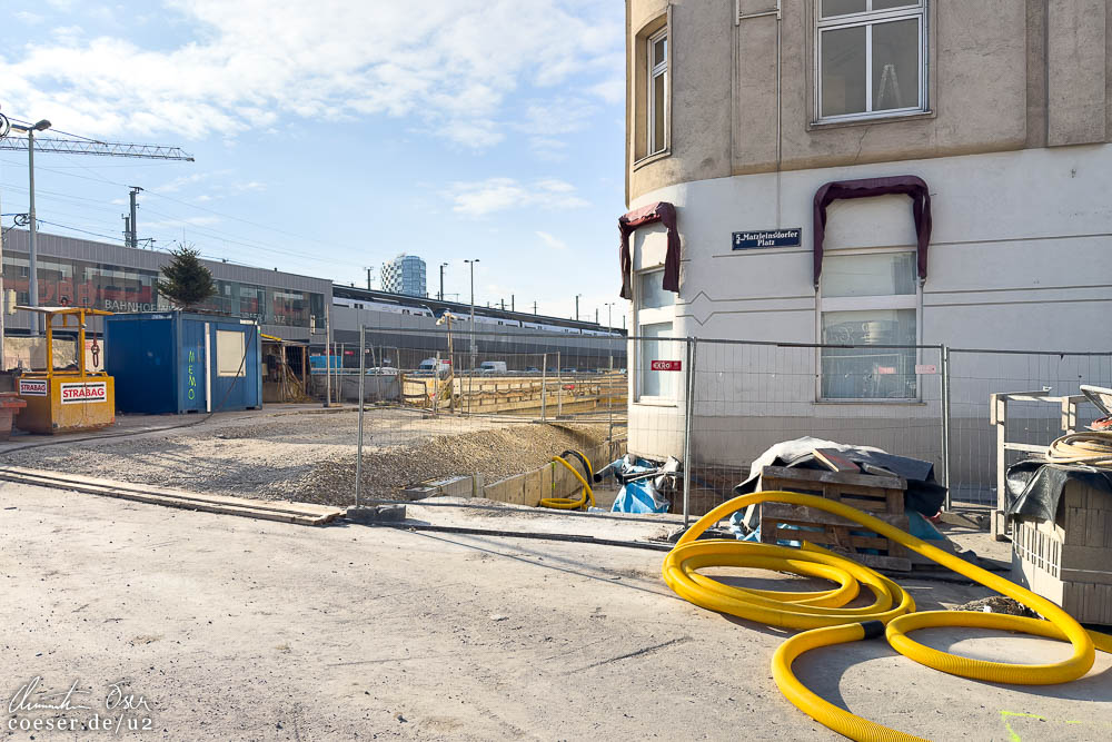 Bauarbeiten auf der Reinprechtsdorfer Straße für die künftige U2-Station Matzleinsdorfer Platz; Fortschritt der Modernisierungsarbeiten in der S-Bahn-Station Matzleinsdorfer Platz.