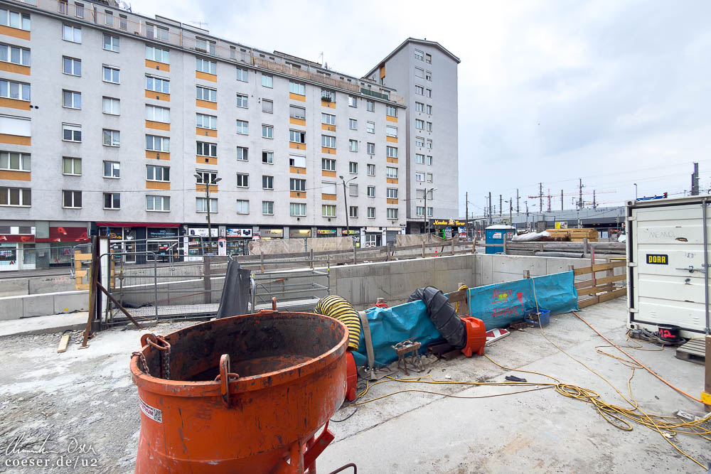 alte Stationszugang sowie ein Blumengeschäft abgerissen und das Baufeld eingerichtet. Am Kollektorbauwerk am Beginn der Reinprechtsdorfer Straße